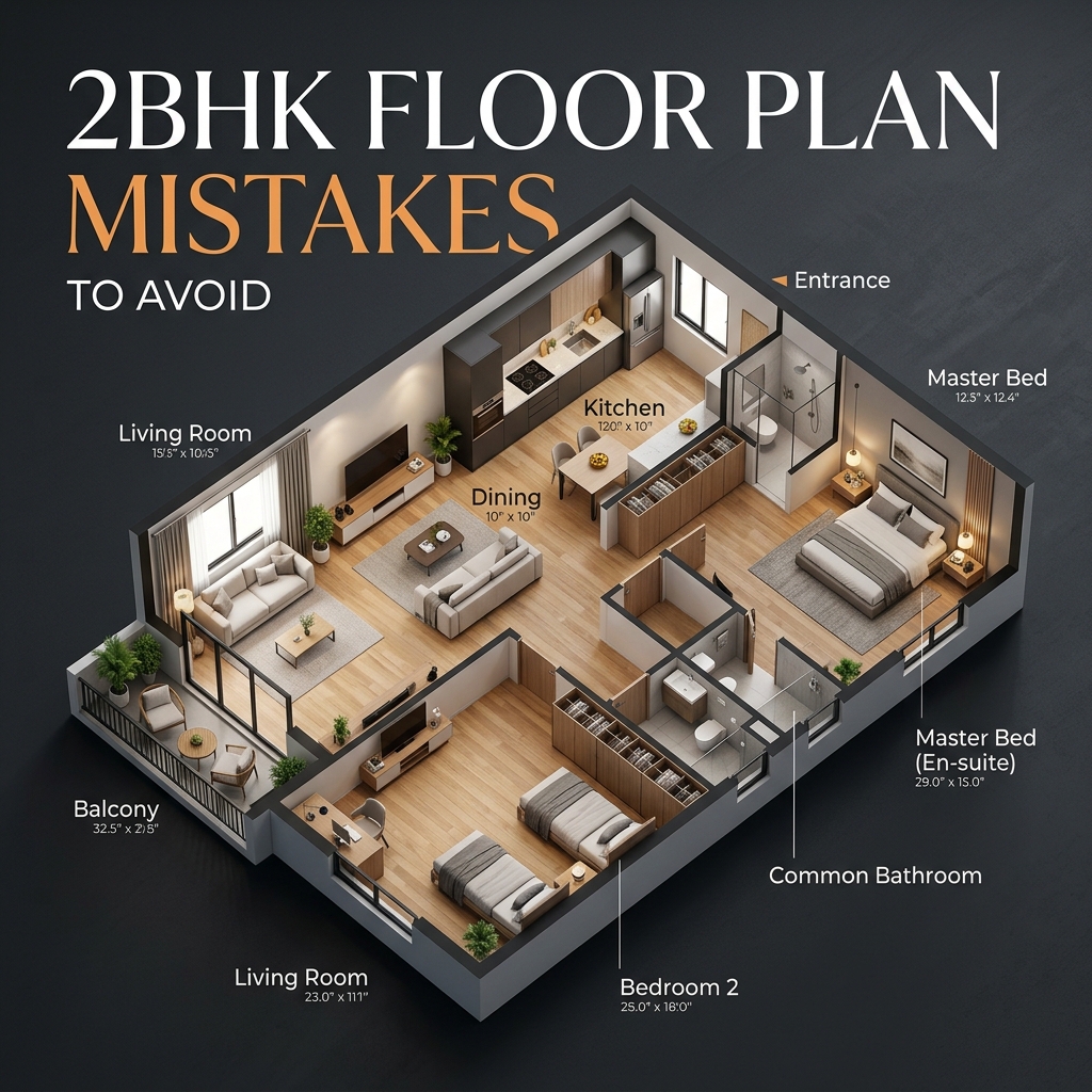 Common errors in 2BHK layouts — from poor ventilation to awkward room flow — and how to avoid them with smart planning from the start.